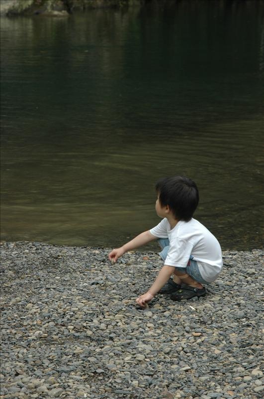 在一旁丟石子的小鬼